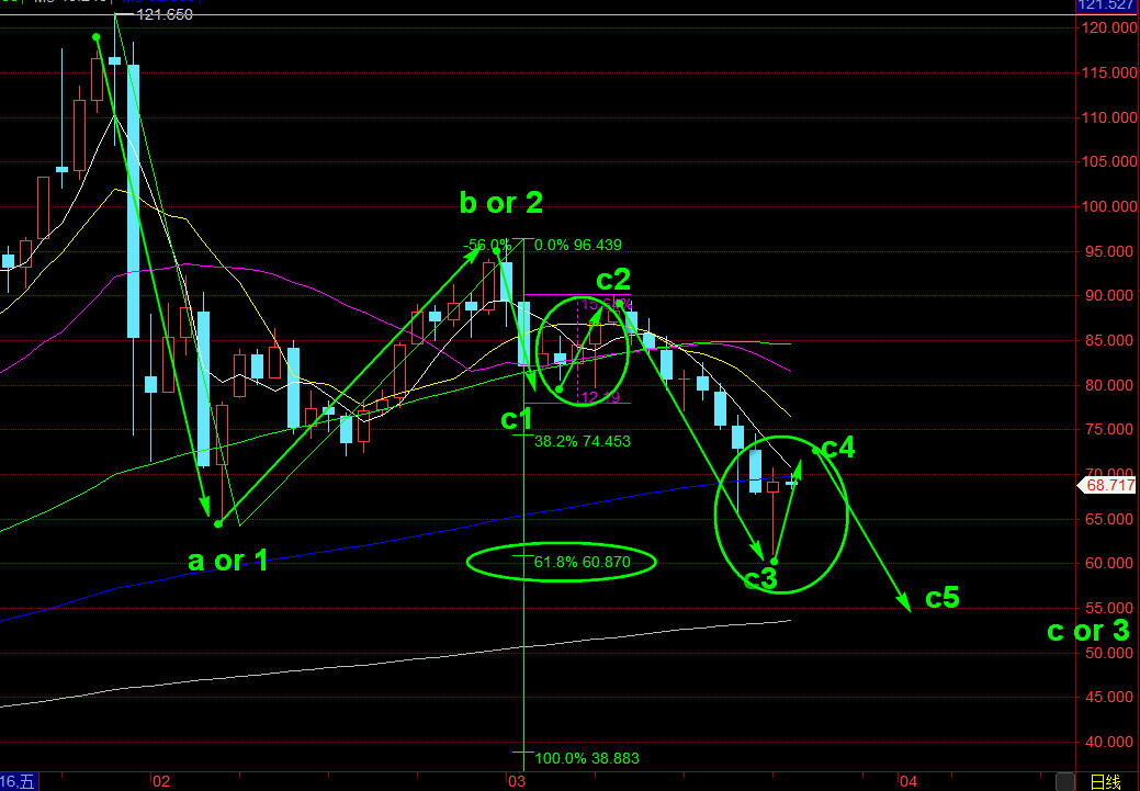 昨天黄金白银继续纷纷表演跳水,黄金大跌到4099,白银大跌到60.95附近,3月份地缘政治升温,我们强调不影响格局,5420承压c浪下跌,白银96/960.50下跌。后面的走势基本如此吧。本周周评《物金融趋势文章746】黄金白银巨阴垂直打击,后市如何演绎?》提及黄金白银均处于C3浪的加速下跌之中,后市要酝酿C4大反弹(然后才是C5下跌),白银到60关口支撑C4浪大反弹,黄金的话,由于波动太大,给的位置差了一些,昨天盘中最后修正为4103美元布局做多看C4浪反弹。但是,由于昨天单日反弹力度大,就需要再修正一下走势。
