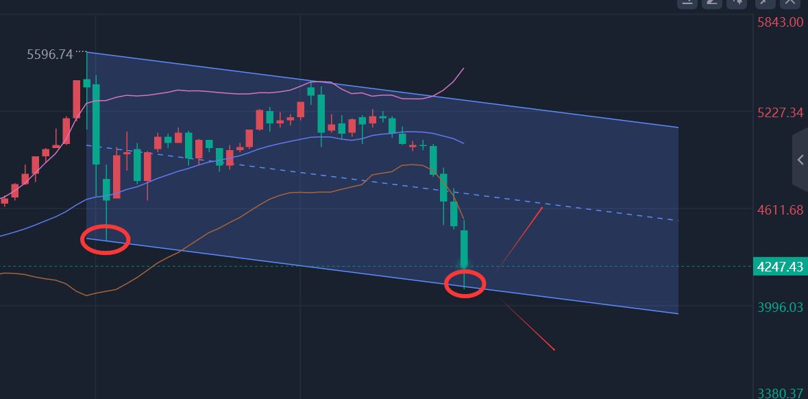 2:市场下跌4100上下的时候,你应该能判断出需要一次超跌反弹修正!比如昨日分析的——通道支撑在4100上下;下面支撑分别是3900上下和3700上下,不管哪一个多布局成功,都是几何倍数的利润回报;【详细可以翻看昨日的更新!】走势图也是非常明显的!如下所示:
