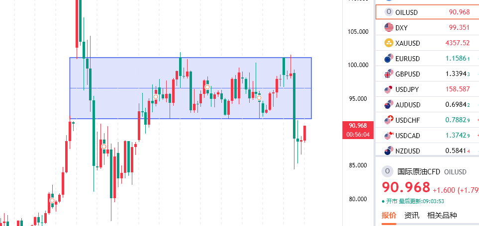 周初随着以伊朗为核心的中东局势持续紧张,炮火依旧不断,尤其是伊拉克已经不可抗拒的情况失去了原油供应能力,油气设施被严重破坏,伊朗情况也好不到哪去,但是因为掌控这霍尔木兹海峡,还有一定的倚仗,随着特朗普放话如果伊朗不开放霍尔木兹海峡将会对伊朗油气设施展开强有力的毁灭式打击,油价大幅高开在101美元附近后回落,黄金小幅反抽4537附近大幅杀跌,盘中一度跌至4098一线,超过400美金跌幅,欧盘时段随着特朗普称已和伊朗达成友好沟通,同时推迟对伊朗的行动,原油价格应声大跌一度触及84.5附近,黄金迅速拉伸在晚间一度触及到了4512附近,随后伊朗否认与美有过沟通,原油继续走反复,黄金晚间再度调整到4350附近维持反复走势,目前局势就是明显美方还是有忌惮,想找个台阶下,但是伊朗有点不识趣,但是油价实打实回落了,说明后续有了谈判的空间,静待市场后续变化即可,操作上黄金关注4330/40一线这个昨天晚间拉高前回踩的低点平台支撑,这个也是日内强弱分水岭,守住就继续看反弹,反之还有继续探底的走势,操作上我们保持低多节奏,但是点位以盘中的实时信号为主,阶段性不会考虑去继续追空操作。