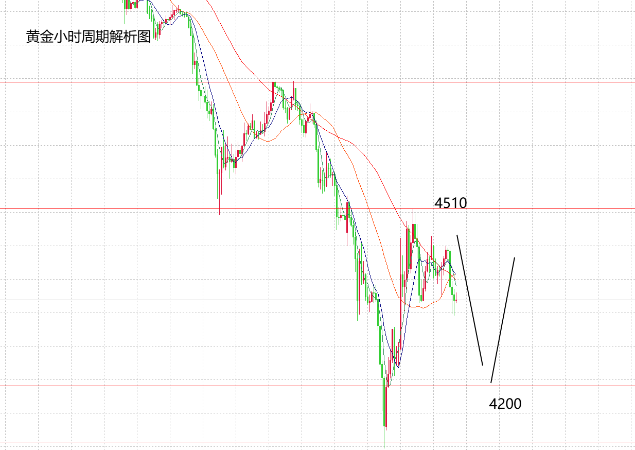 回顾这惊心动魄的24小时,我们清晰地看到,当前市场的核心驱动力只有一个——地缘政治风险及其引发的通胀预期。黄金、原油、美元和美债收益率之间的联动关系达到了前所未有的紧密程度。金价的“深V”走势,完美诠释了其在当前宏观环境下的双重属性。当市场焦点是地缘冲突的直接避险需求时,黄金会上涨;但当焦点转变为冲突引发的“通胀-加息”逻辑时,黄金又会因利率上升而暴跌。周一的市场,正是后一种逻辑的极致演绎。这场“过山车”行情也给投资者敲响了警钟,川普的一则社交动态,足以让技术面和基本面预测瞬间失效。市场前路依然乌云密布。当前,黄金冲高至4510美元后,午夜再次震荡回落,收盘在4360附近,虽然暂时市场缓和,但美元,原油仍然在高位中,因此黄金还在承压状态,在能源问题为能完全解决之前,黄金很难进入正常的避险上涨逻辑,因此,暂时的地缘缓和只能带动黄金走震荡的表现。技术面中,虽然黄金收高至4510,日线收一个长下引线的锤子线,但目前日线还没有收阳,布林还没有收口,所以,暂时还不确定4100是底部点位,后市的表现情况要根据地缘局势变化来判断,H4周期在反弹,确定4510的短期顶部,布林开口,均线向下发散,所以,暂时还是极弱表现,承压回落也属于中期正常表现,今天延续弱势黄金还有下跌的空间,下方可能会去4200低点,然后再看是否有筑底的结构,因此,今天如果市场没有太大的意外的话,黄金大概率会在4500美元压制下继续回落,下方关注4200,不排除4100低点破位。