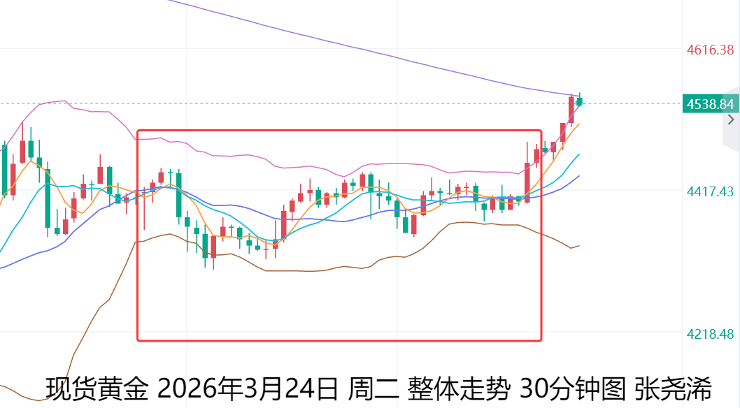 展望今日周三(3月25日):国际黄金开盘延续隔夜尾盘回升之力先行走强,美元指数及原油走势早盘偏弱,对其产生一定支撑,另外,因来自土耳其、埃及和巴基斯坦的调解方正推动在未来48小时内安排美伊官员会晤,美国有意提出为期一个月的停火方案,以便与伊朗讨论一份包含15个要点、旨在结束战争的协议等,也令地缘局势风险有所转变,而推动金价走强。