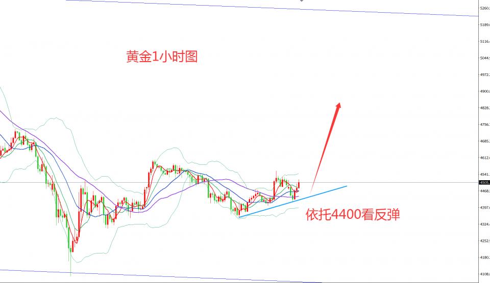 从目前的走势来看,黄金还运行在4600——4300区域的震荡,对应内盘基本是960——1020区间震荡,上周连续测试970——960区域支撑之后企稳,本周是个时间转折点,今天开盘,也没有因周末的消息而带动大幅下跌,这是一个明确的反弹信号。所以,目前已经介入多头的继续等待反弹即可,没有介入的,短线回踩,内盘以990附近,外盘以4470——4430区域为参考区间,进场做多。一旦突破4600美元关键压制,将会加速反弹冲高。