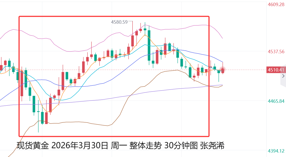 上交易日周一(3月30日):国际黄金震荡收涨,维持近期的震荡格局,且对于原油和美元的走强反应有所脱敏,同时鲍威尔释放长期通胀预期仍受控的鸽派信号,市场撤回对美联储今年加息的押注,这暗示后市有望在筑底震荡后再度转强攀升,重回5000美元关口或上方。下方则关注近期震荡区间底部支撑,以及布林带下轨支撑附近选择进场。