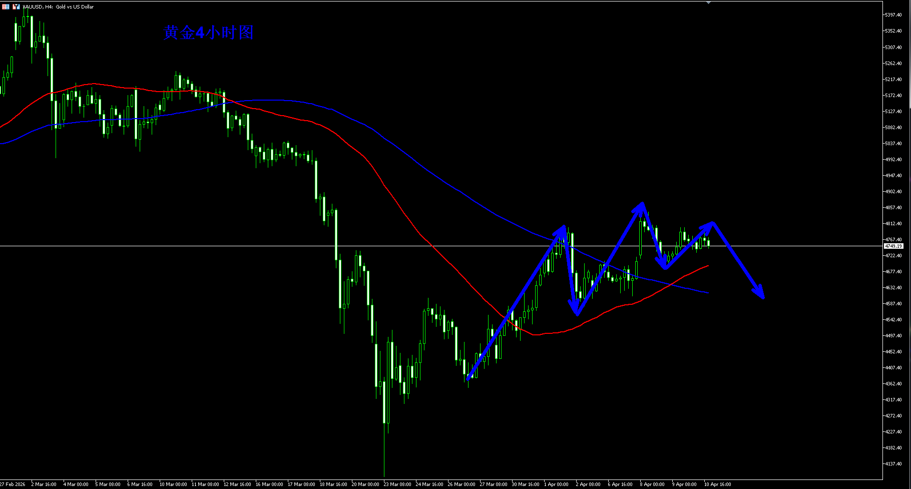 黄金当下进入了窄幅震荡,都在等待美伊和谈的进一步影响,如果美伊和谈局势缓解,那么悬在市场的一颗心也就放下了,那么原油短期价格将承压,那么市场担忧的通胀短期得到缓解,又给下一次美联储会议留下了空间,那么降息预期可能将升温,短线黄金可能延续反弹,不过也不能高兴的过早,即使局势缓和,那么5000也是当下黄金的重要阻力关口,而且和谈还存在着很大的变数,毕竟双方的目标不一致,所需所求存在着矛盾。当下的状态更像是恃强凌弱,逼迫就范的味道。