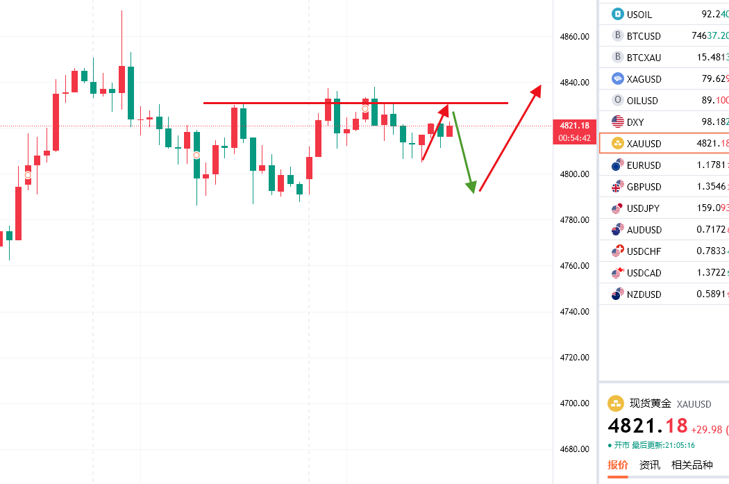 黄金反弹在4826/28附近空,防守4842,目标看4800/4780附近,回踩4778附近多,防守4763,目标看4810/4830一线