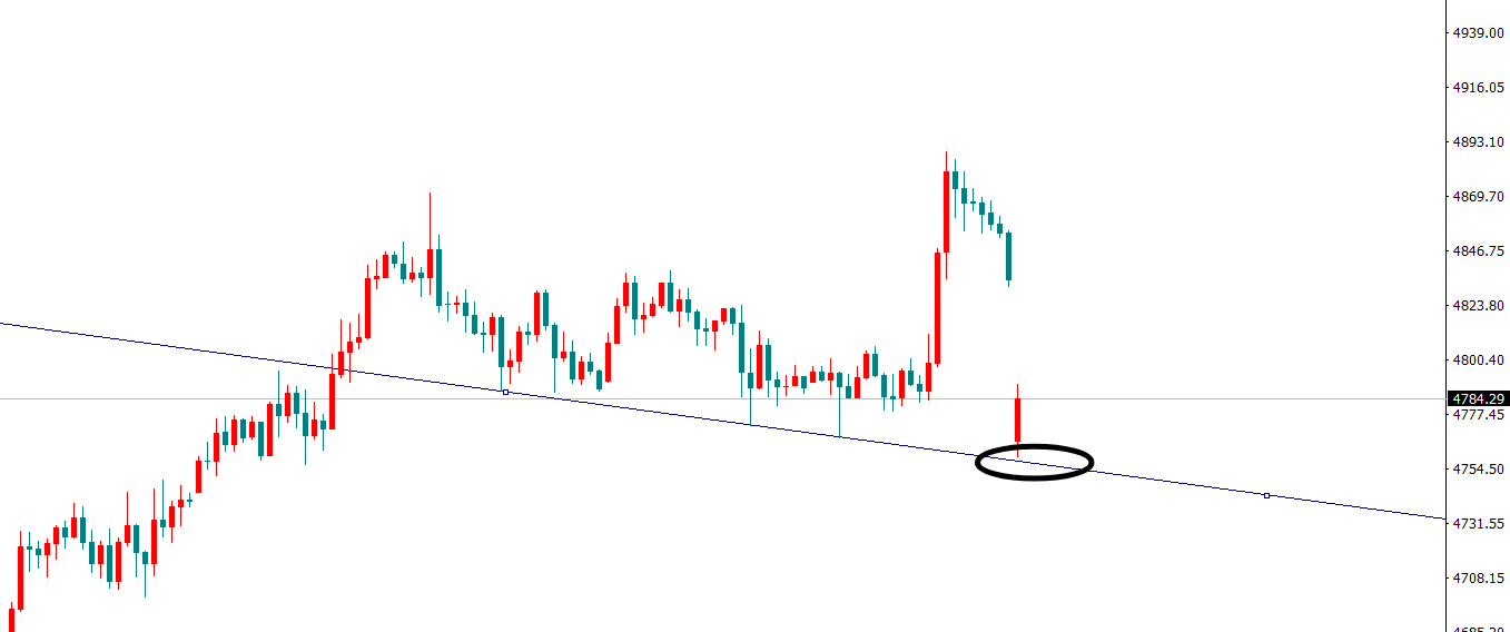 操作上,刚才速度太快,来不及进场,稍后等回落靠近4770买入或者有效站稳4800整数关口顺势买入,上方目标进一步指向4900上方!!!