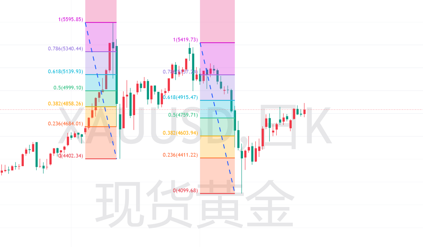 根据连续两次大幅回撤以及回撤后的反弹上涨以及再度下跌,寻找相似对应的涨跌幅,可根据图示以及点位计算最终4891回落幅度为300个点,也就是最终价格4590附近。