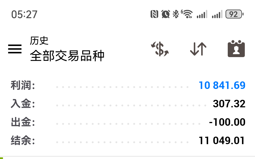 获利10841刀,同步获利百分比101.1%