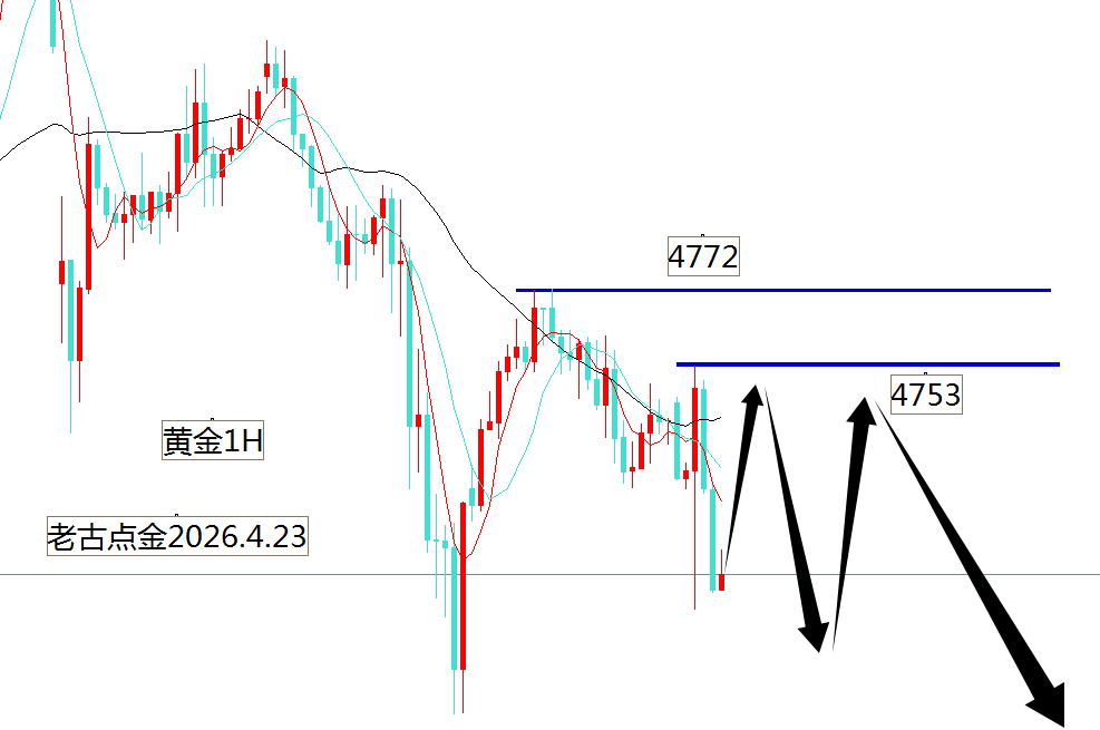 黄金经历了几波过山车的行情,最终形成了日线级的大震荡,基本面千变万化,也是导致了黄金的行情不太稳定,整体看日线呈现弧形下冲的形态,对多头非常不利好,日线形态显示4636这个位置要是破了,就可能带来周线级的调整,因为日线的5.10.30日均线全部开始上翻了,后面要是跳水不会给空头太多的上车机会,而是会形成瀑布跳水,老古反反复复多次说过,我们不猜测行情,但是我们必须先要知道形态,今天的短线思路我们先高空对待,空头目标先看4666附近,大家在交易时一定要先铆钉空间,不然你进的单子很难拿的住,因为你害怕没有空间害怕损单?不知道方向不知道空间,不清楚它后面节奏,就没有一个好的心态去拿利润单,这就是我们为什么要坚持分析的原因。