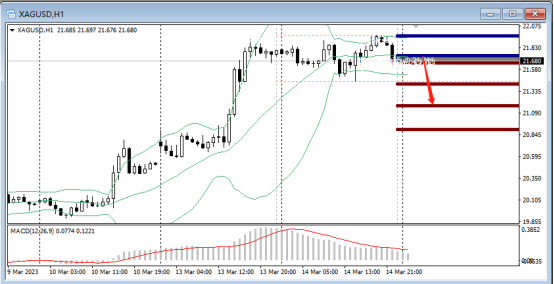 MACD在0轴之下,代表空头意愿强,同时价格运行在布林带中轨下方,预示行情向下的概率大,故而可以采取高抛策略,第一压力位置21.900,下个目标看向21.200