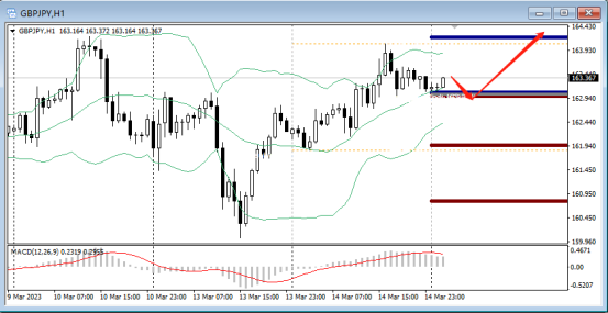 MACD在0轴之上,代表多头意愿强,同时价格运行在布林带中轨上方,预示行情向上的概率大,故而可以采取低多策略,第一支撑位置162.700,下个目标看向164.300