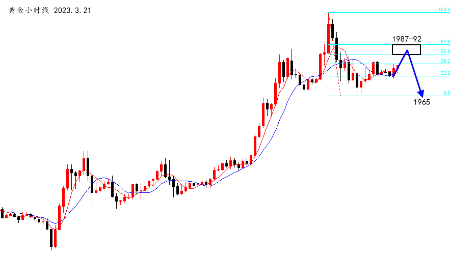 其次便是短线操作,今天我认为要反弹做空为主,昨日冲高2009回落,日线录得长上影阴线,没有理由不去顺势空一次,那就直接分享策略了,黄金短线1987-92空,止损1999,目标1965,破位目标待定!