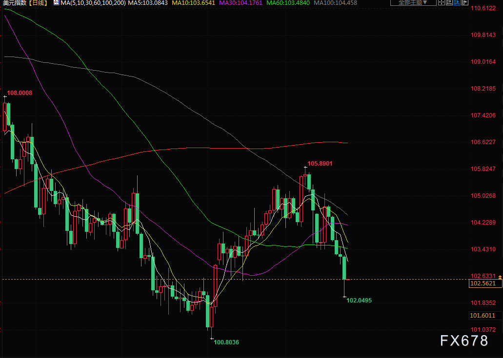 美元指数尾盘下跌0.63%,至102.500,欧元上涨0.87%,至1.0861美元。美元兑日元下跌0.82%,英镑尾盘报1.2268美元,当日上涨0.41%。