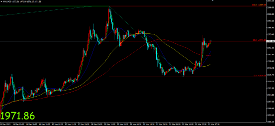 国际黄金周三(3月22日)触底反弹大幅收涨,开盘价1947.95美元/盎司,最高价1951.75美元/盎司,最低价1934.08美元/盎司,收盘价1947.07美元/盎司。