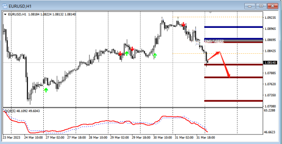 目前QE箭头向下,代表空头强劲,预示行情向下的概率大,故而可以采取高空的策略,可以在15分钟寻找做空信号,第一压力位置:1.08580。下方支撑1.07770