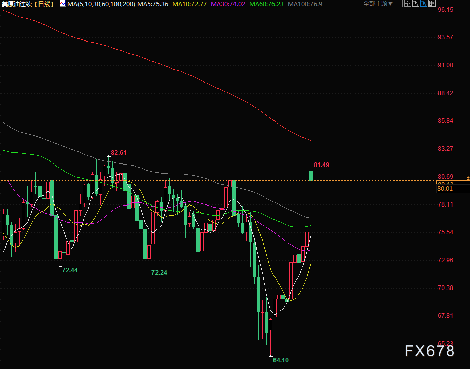 商品收盘情况:布伦特原油期货收高6.3%,结算价报每桶84.93美元,此前触及3月7日以来最高的86.44美元。美国原油期货结算价上涨6.3%,报每桶80.42美元,盘中稍早曾触及两个月高位。美国期金报收于2000.40美元,上涨0.7%。