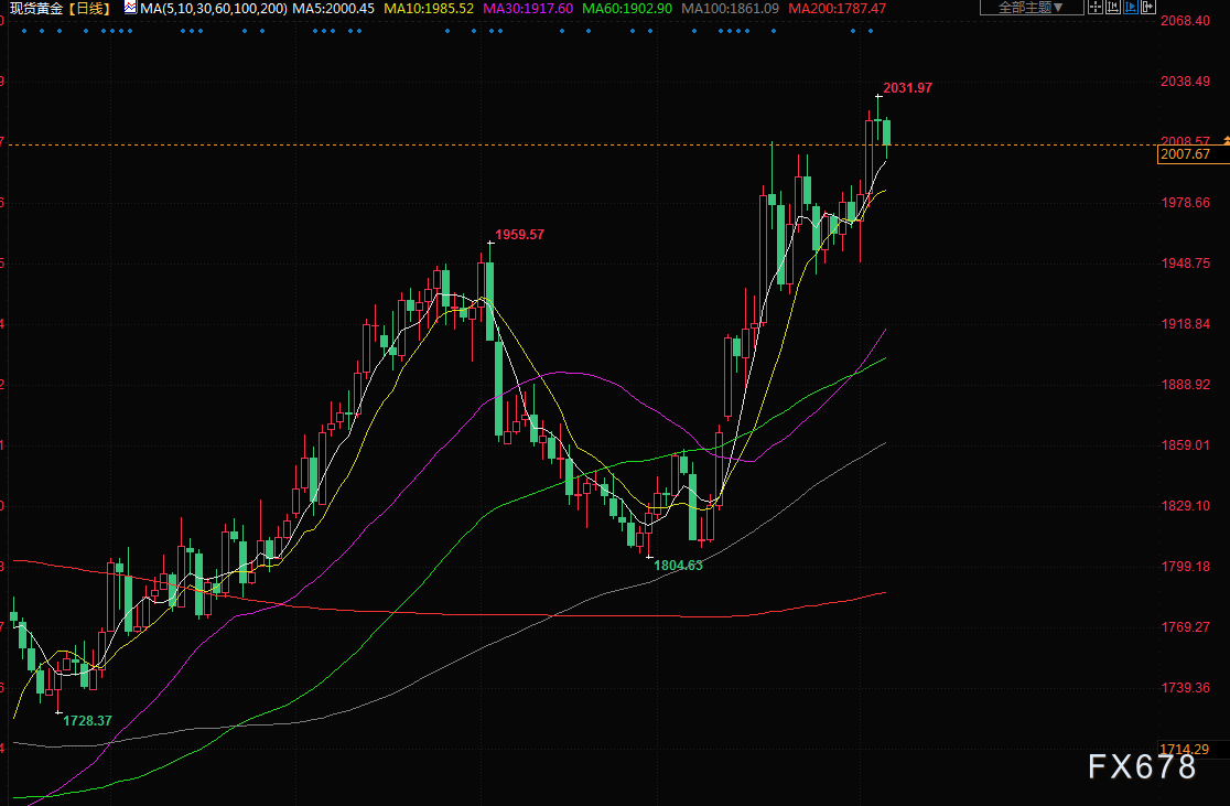 本周迄今,避险黄金已经上涨2%以上,突破了关键的2000美元水平,此前油价在石油输出国组织(OPEC)和盟友组成的OPEC+联盟减产的冲击下急升,且数据显示美国服务业放缓,职位空缺减少。