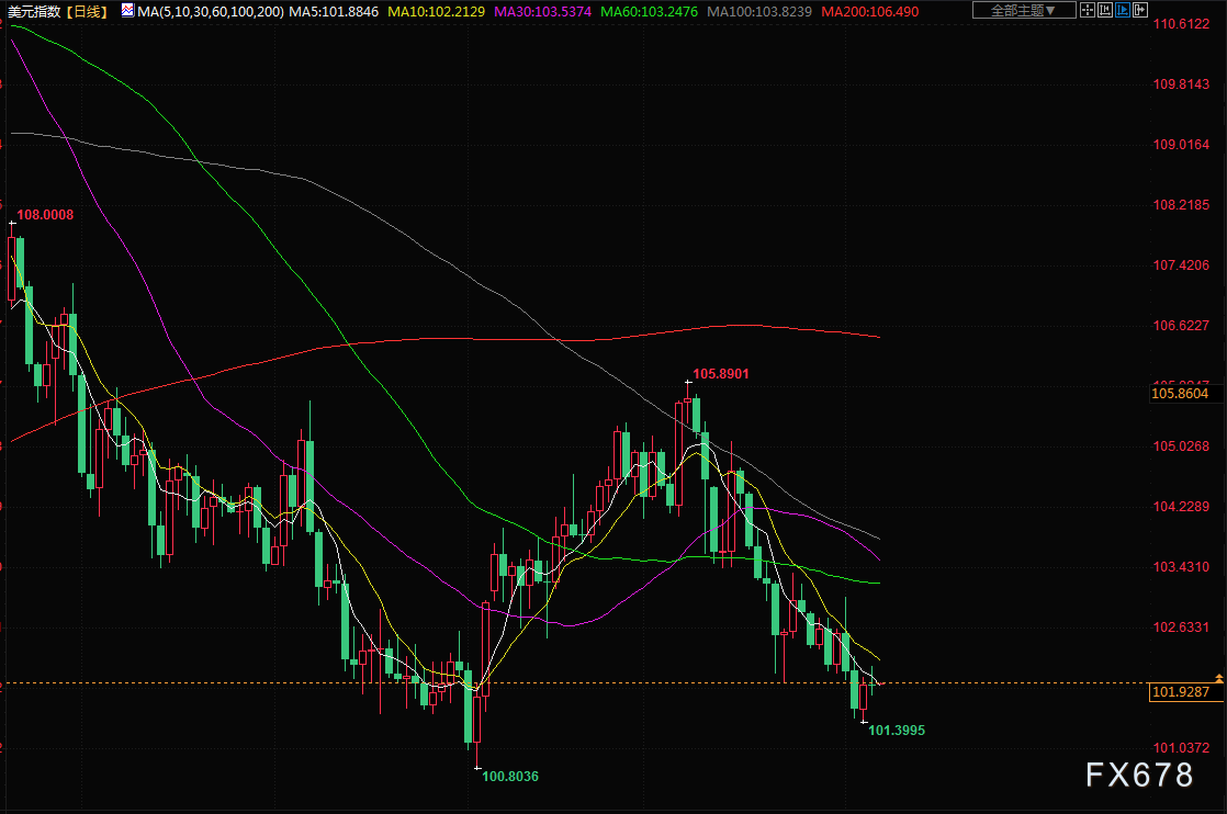 午后交易中,美元指数下跌0.1%,报101.81,本周稍早触及两个月最低,部分归因于美债收益率下降。