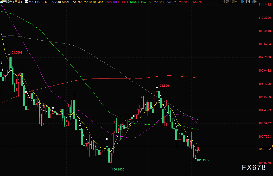在下午的交易中,美元指数上涨0.1%至102.03。美元兑日元上涨0.3%,报132.10,而欧元则下跌0.1%,报1.0910美元。
