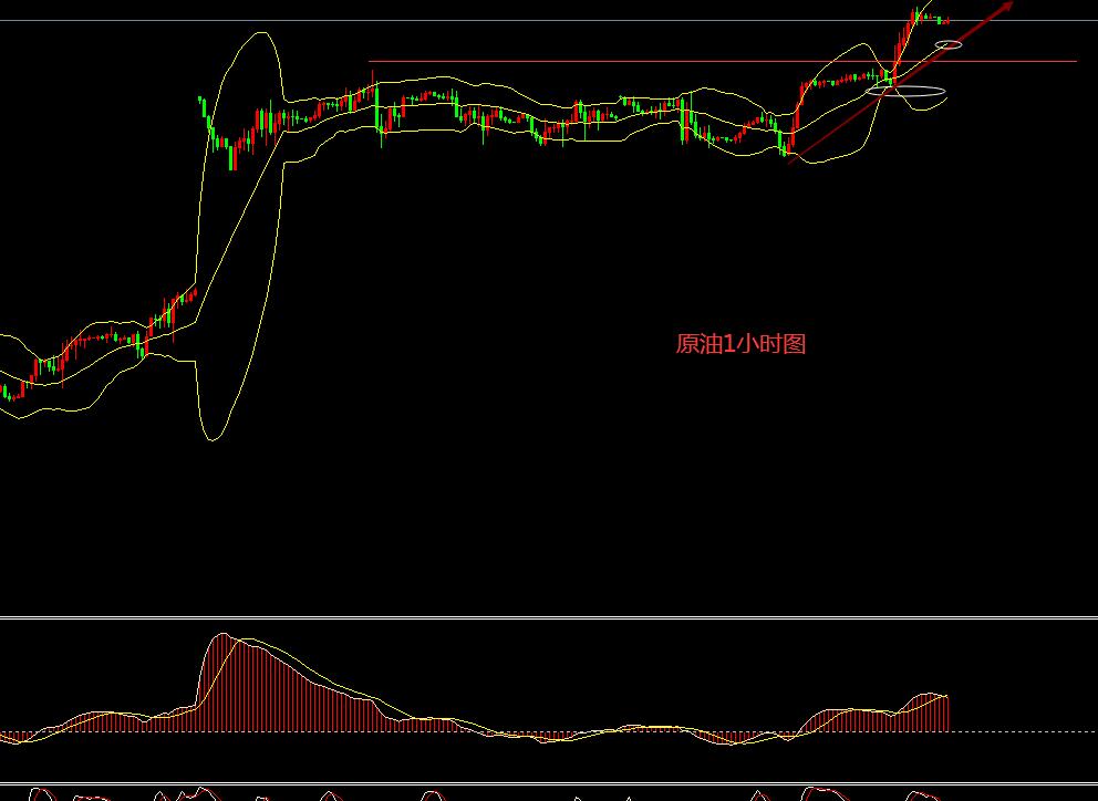 4小时图本周周初维稳在79.50附近横向整理蓄势,昨日发力形态破高向上,同时突破81.80和82.60双重阻力。4小时看涨。1小时图顶开布林道向上。中轨的支撑上移至82.40.周初的突破顶底转换支撑在81.80.日内短线操作回踩82.50-82.70附近分别做多 防守放在81.50即可目标上看84.0-84.60.
