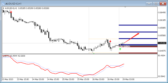 目前QE箭头向上,代表多头强劲,预示行情向上的概率大,故而可以采取低多的策略,可以在15分钟寻找做多信号,第一支撑位置:0.64959。上方压力0.65930