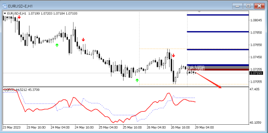 目前QE箭头向下,代表空头强劲,预示行情向下的概率大,故而可以采取高空的策略,可以在15分钟寻找做空信号,第一压力位置:1.07368。下方支撑1.06867