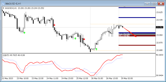 目前QE箭头向上,代表多头强劲,预示行情向上的概率大,故而可以采取低多的策略,可以在15分钟寻找做多信号,第一支撑位置:23.095。上方压力23.655