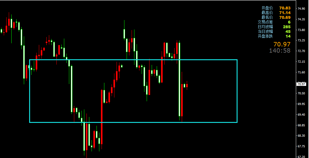 原油反弹72附近空,防守72.8,看71-70一线,回踩初见69.6附近多,防守68.8,看71上方