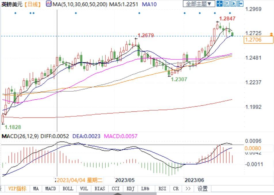 英镑兑美元日线图北京时间6月23日15:20,英镑兑美元报1.2710/11