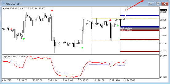 目前QE箭头向上,代表多头强劲,预示行情向上的概率大,故而可以采取低多的策略,可以在15分钟寻找做多信号,第一支撑位置:23.147。上方压力23.668