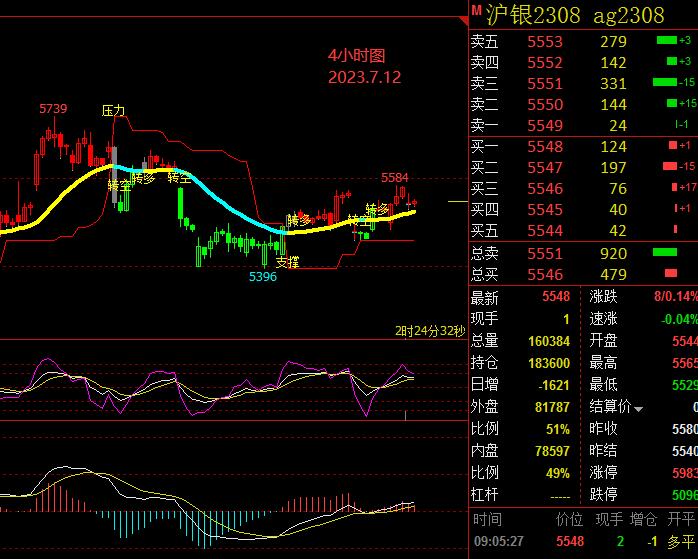 白银、沪银:维持震荡上行模式,关注区间仍在24-22,关注大区间24.6-21.4.沪银根据我们风向指标显示区间5390-5660,大区间关注5740-5270。
