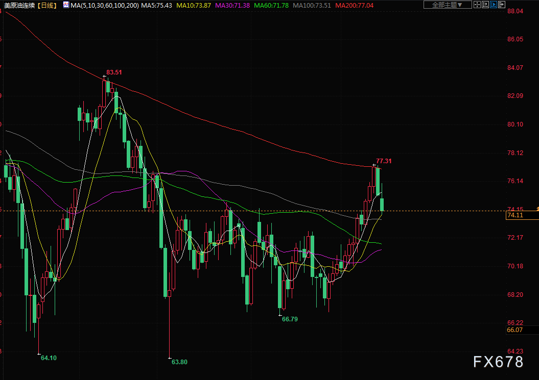 商品收盘情况:美国期金收低0.4%,结算价报1956.40美元。布伦特原油期货收跌1.7%,报每桶78.50美元;美国原油期货收跌1.7%,报每桶74.15美元。