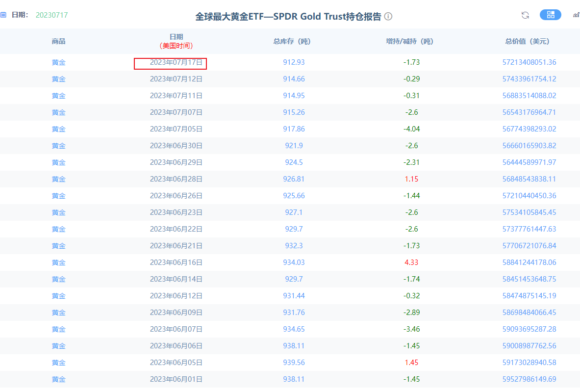 心里有点数,虽然国际黄金这波从1925因为十年期美债收益率下跌从而走出强势拉升上涨到1960附近,但是你看全球最大ETF黄金的持仓,正在连续不断的减持。这种表现我就问你看涨慌不慌。