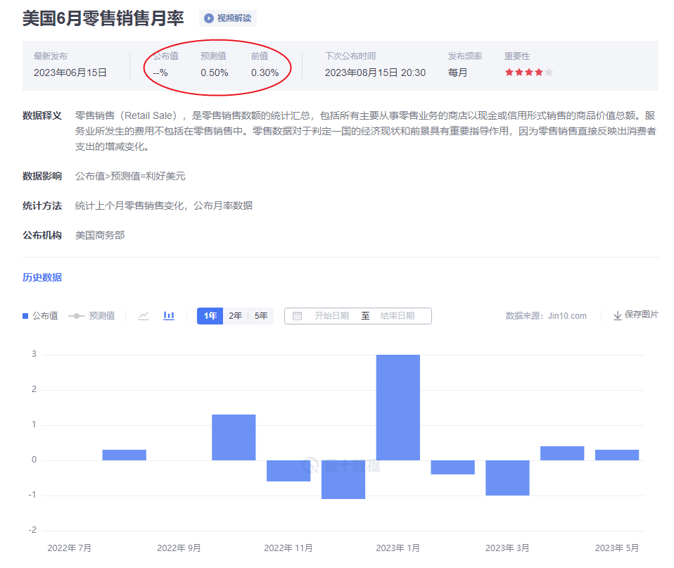 当然反之就是另外一种影响了。所以你看到 零售销售数据影响范围有多广了吧。当然这里还未谈及服务业,因为对于服务业并不是直接影响。那么今晚的零售销售数据来看,前值是0.3%,预期值是0.5%从预期值来看是明显的利好美元。不过我结合7月初公布的就业数据中小时薪资增速的上涨,以及连续的通胀下跌来判断,零售销售数据也是倾向于走上涨的。