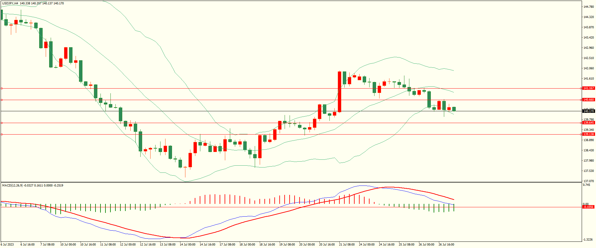 美日昨日亚市开盘后继续走低,尾盘时段回落至第一支撑略有反复,日线报收上下影线中阴线,目前下方紧邻前低密集支撑区,下破后方可打开下行空间,从4H来看,布林中轨偏下,MACD零轴附近运行,日内上方首要阻力140.65,第二阻力141.15,下方支撑139.65,139.10,保持在第一阻力下方短线有望测试第一支撑。