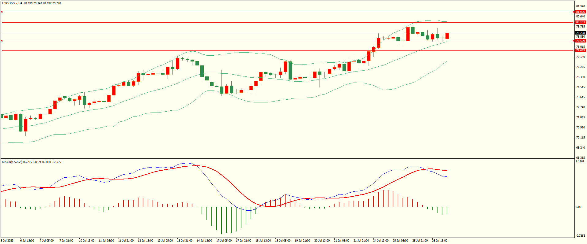 原油昨日回调至第一支撑附近延续反弹,但上方空间受限,日线报收上下影线小阴线,下方支撑保持,同时上方临近前低密集压力区,突破后方可打开上升空间,从4H来看,布林中轨偏上,MACD零轴上方运行,日内下方首要支撑78.50,第二支撑77.65,上方阻力80.10,81.00,保持在第一支撑上方短线有望测试第一阻力