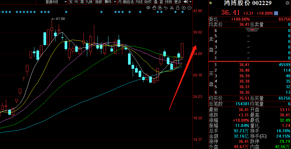 早上鸿博开盘就很强势,不断有资金往上打,盘中拉到5个点附近为了扩大利润垫,让兄弟们先减仓了,我则殿后,说实话这主力洗盘也够暴力的,我差点忍不住减了,还好捂住了。