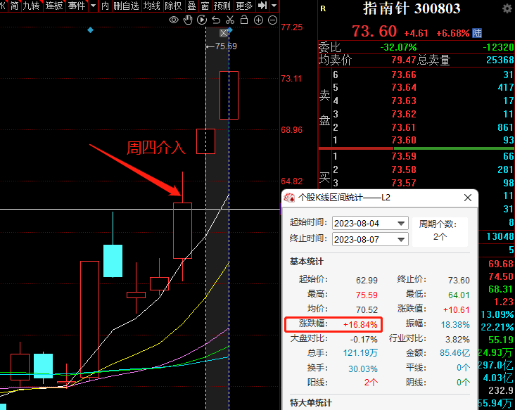 就像周四尾盘介入的指南针,周五从容减仓,昨天大金融继续高举高打,光是两天涨幅都有16%+