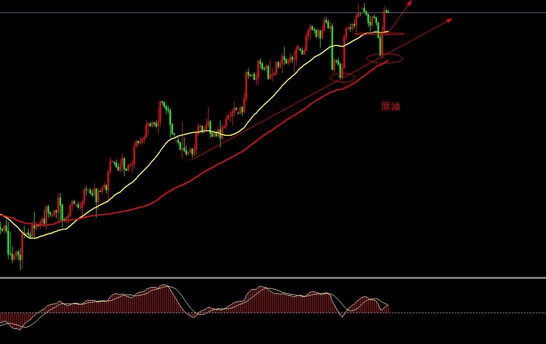 原油昨日下探回升,日线回踩后快速收复失地,收成十字小阳K线,重新收回均线之上。下探后当日就快速收复,强势修正的走法。空间上也进行了回撤,但收盘在高位,也就是回撤持续性不强,多头趋势不改。日线有望再次单边发力,短暂修正蓄势后具备进一步冲高动能。日线看涨。