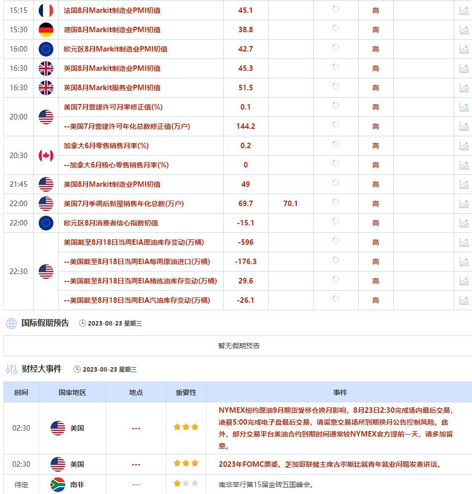 ③8月23日(周三)关键字:美国截至8月18日当周API和EIA原油库存变动,欧元区8月消费者信心指数初值