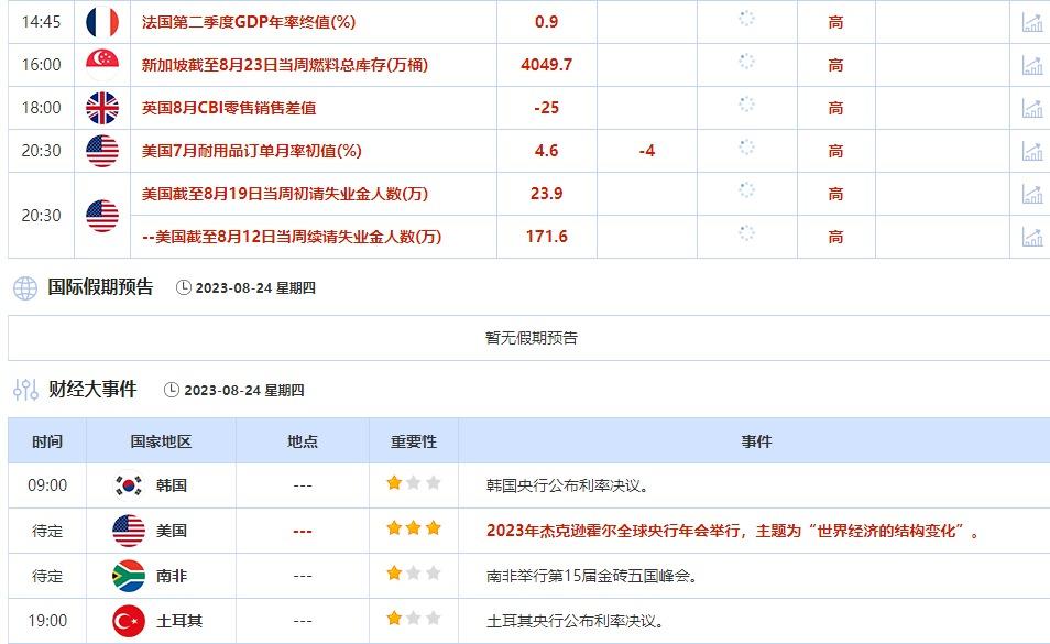 ④8月24日(周四)关键字:美国截至8月19日当周初请失业金人数,杰克逊霍尔全球央行年会