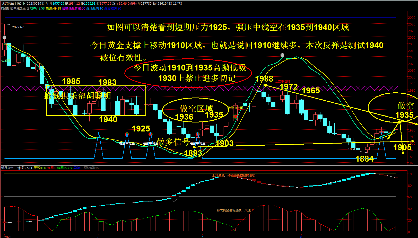 黄金1906到1930震荡, 高抛低吸!