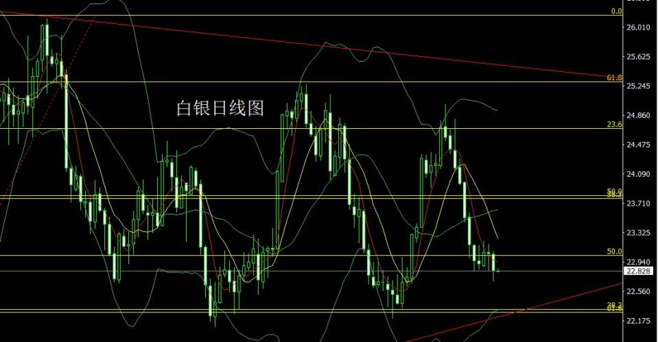 白银市场昨日开盘字23.043的位置后行情小幅拉升给出23.091的位置后行情先回落,日线最低给到了22.689的位置后行情区间宽幅波动,日线最终收线在了22.829的位置后行情以一根下影线很长的大阴线收线,而这样的形态收尾后,今日的行情如果先回落给出22.6多止损22.4,目标看23和23.3-23.5压力