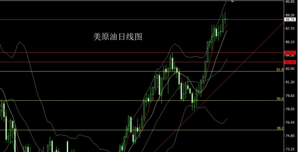 美原油:今日的行情早盘如果直接回落87.7-87.5多止损87.2,目标看88和88.9和89.7压力。