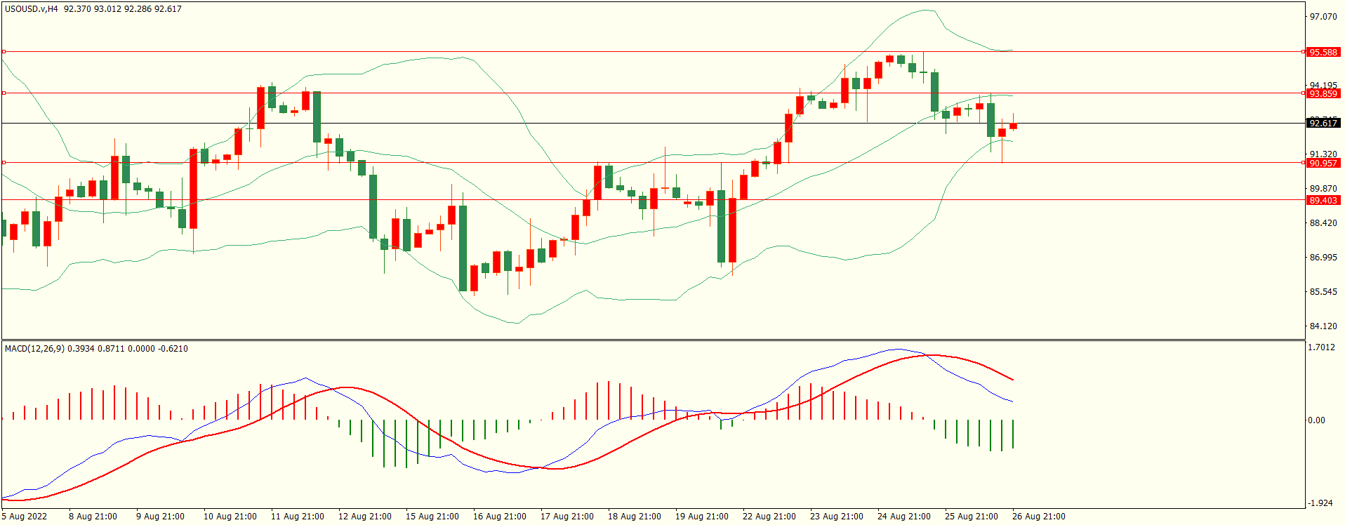 原油上周五小幅反弹后承压下行,至收盘回落至第一支撑跌势缓和,日线报收上下影线小阴线,上方阻力保持,日线空头略有占优,从4H来看,布林上下轨略有扩张,MACD零轴附近运行,日内上方首要阻力93.80-90,第二阻力95.50-60,下方支撑90.90-91.00,第二支撑89.40-50,第一阻力在没有收复前短线有望回测第一支撑