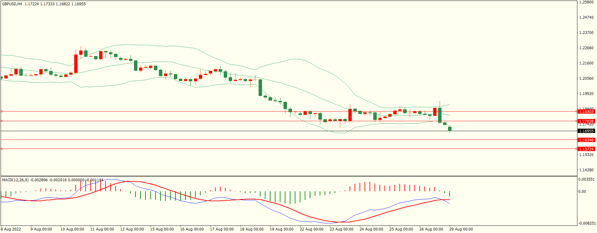 镑美上周五在多空因素交替影响下动荡加剧,盘中反弹至第一阻力上方承压下行,日线报收上影线大阴线,从总体来看,空头动能增强,日内有继续走低迹象,从4H来看,布林中轨拐头向下,MACD零轴附近运行,日内上方首要阻力1.1760-70,第二阻力1.1830-40,下方支撑1.1630-40,1.1570-80,第一阻力在没有收复前有望继续测试第一支撑区。