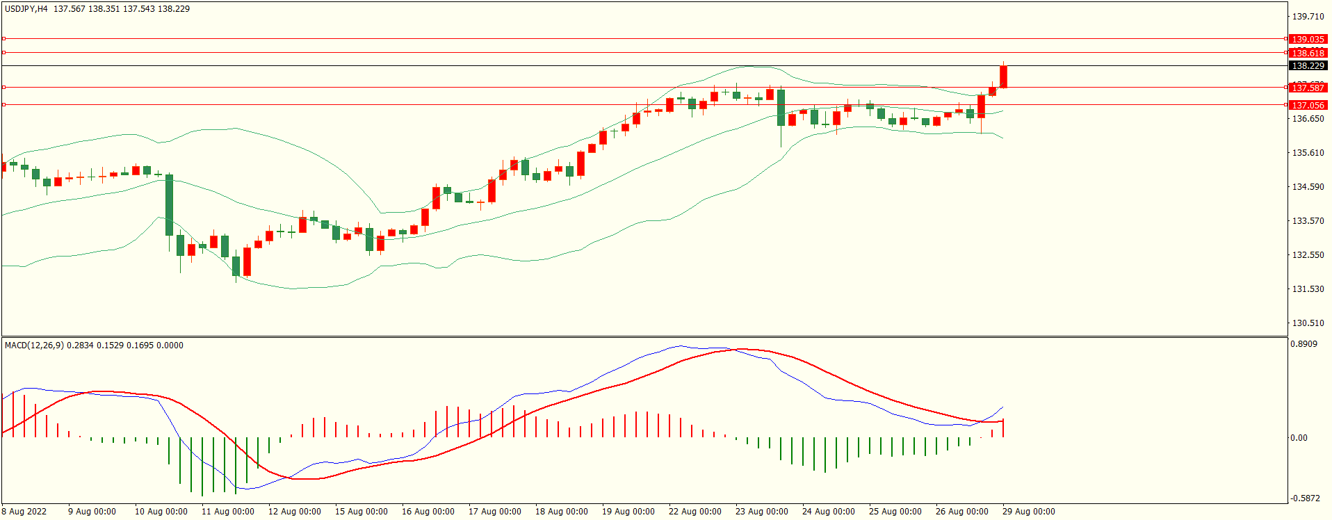 美日上周五回落至第一支撑继续走高,至收盘续创日内新高,日线报收上下影线中阳线,目前上方面临密集压力区,突破后方可打开上升空间,从4H来看,布林中轨略有拐头,MACD零轴上方运行,日内下方首要支撑137.60-70,第二支撑137.00,上方阻力138.60,139.00,保持在第一支撑上方短线有望继续测试第一阻力。