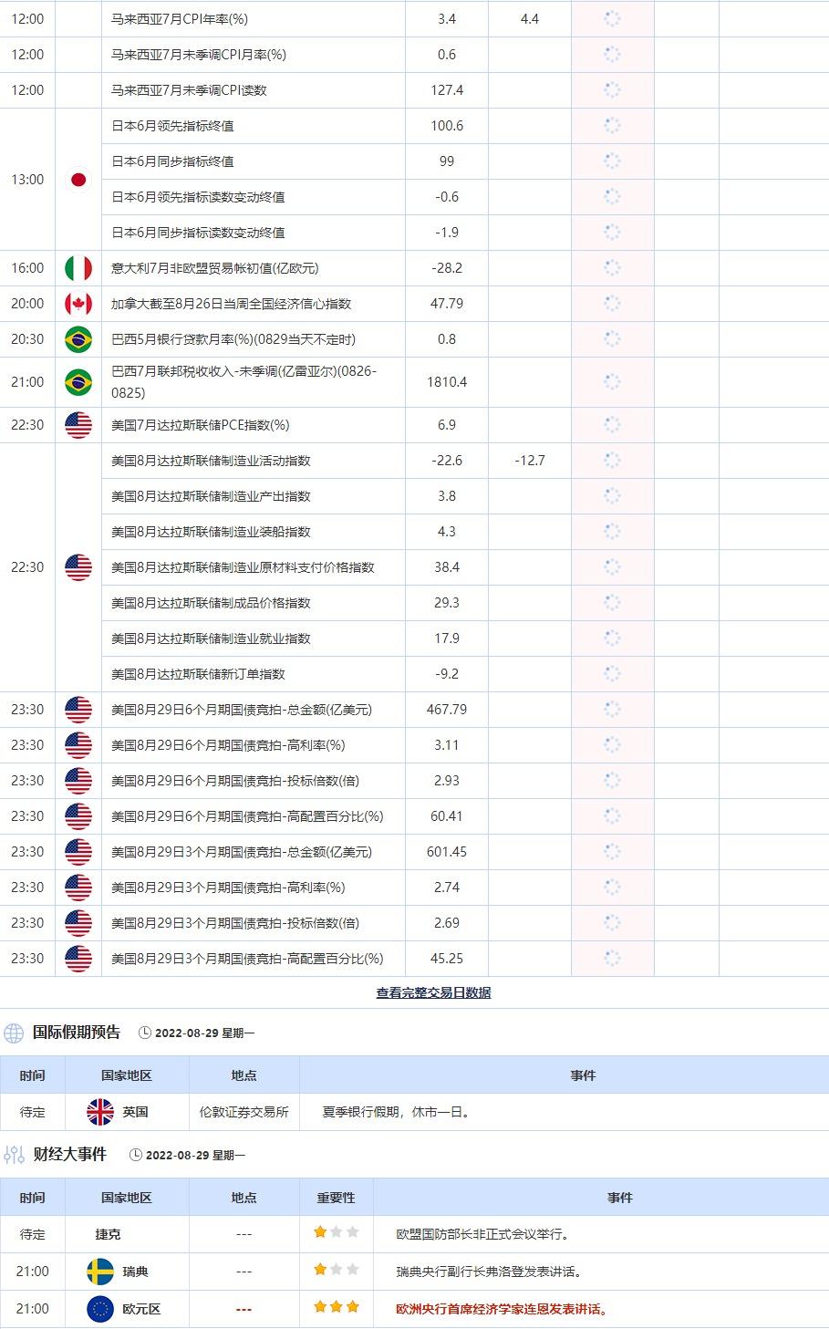 8月29日重点数据和大事件前瞻