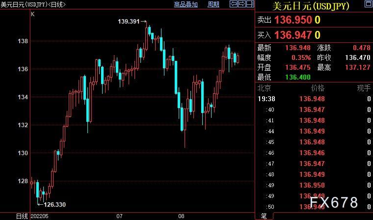 美元兑日元几近持平,交投于136.90附近,盘中创7月22日以来新高至137.703。由于日本薪资增长未能得到提高,日本央行仍将坚持审慎政策,日元将进一步全面下滑。