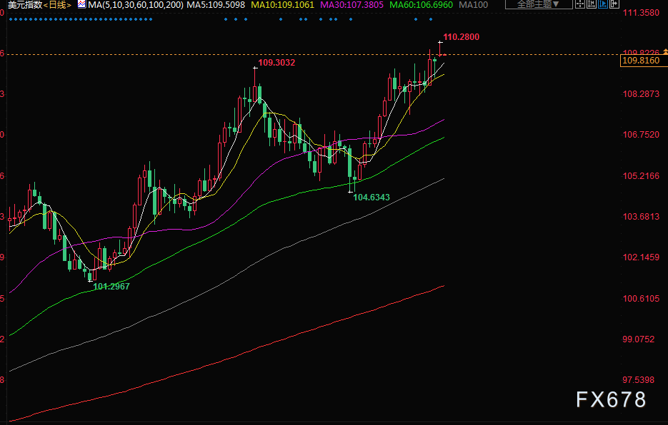 美元周一盘中一度刷新20年新高至110.28,在美联储承诺“有力”对抗创纪录的高通胀之际,美国银行以迈克尔·哈奈特为首的策略师预测,随着美国经济继续面临消费价格飙升、家庭高储蓄、数十亿的财政刺激和乌克兰局势的影响,经济将出现“快速通胀冲击,缓慢衰退冲击”。华尔街越来越一致认为,美联储将通过一系列激进的加息来对抗通胀,从而引发经济衰退。政策制定者在6月和7月批准了连续75个基点的加息,根据即将公布的经济数据,9月将再次大幅加息。同时受益于欧洲能源危机加剧,打压欧元影响。